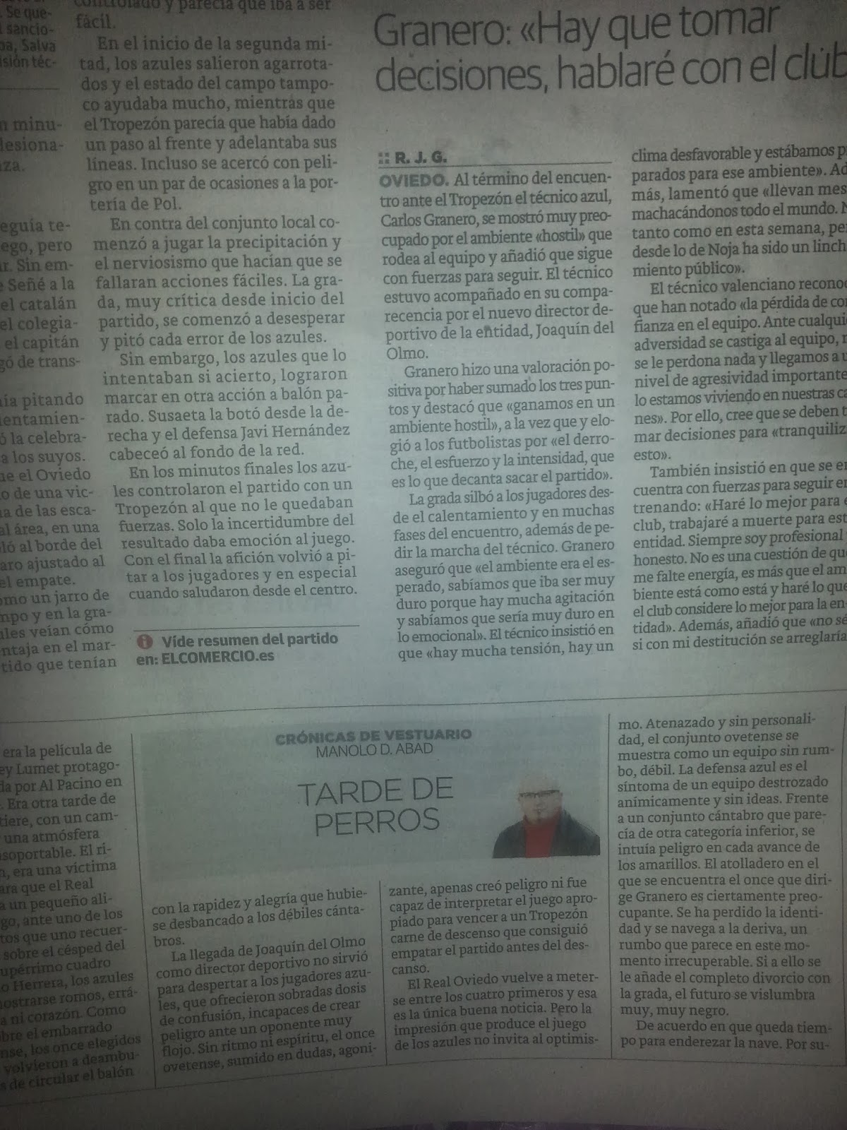 Publicado en la edición papel del diario "El Comercio" el jueves 16 de enero de 2014